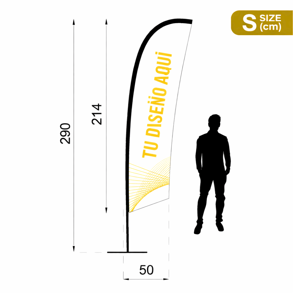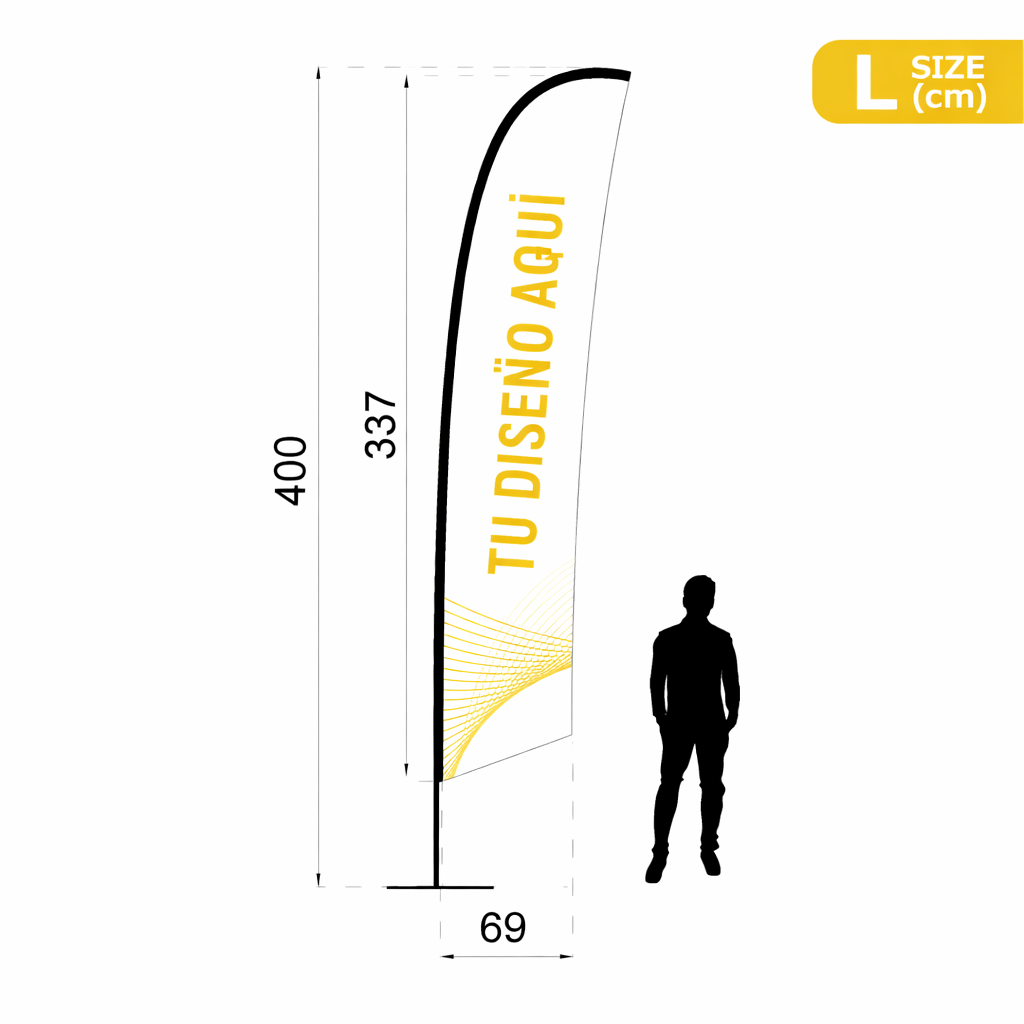 El Fly Banner Surf, también llamado tipo vela o Beach Flag Surf, es un soporte publicitario con forma inspirada en una tabla de surf. Su diseño permite aprovechar mejor el espacio gráfico, facilitando la visibilidad del mensaje.