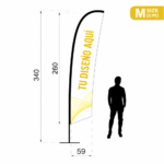El Fly Banner Surf, también conocido como Beach Flag tipo vela, destaca por su forma similar a una tabla de surf y por ofrecer una mayor superficie para la comunicación visual. Disponible en versión estándar o doble cara, es una solución publicitaria muy demandada por su impacto y versatilidad.